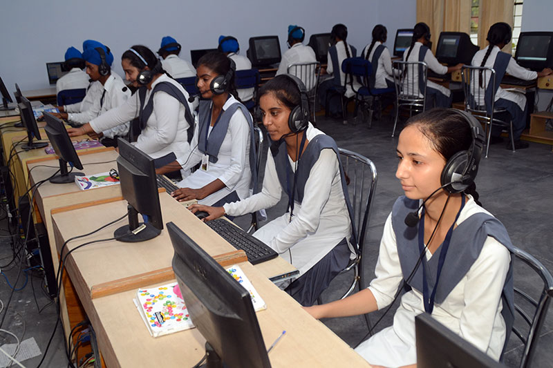 The student player is linked to the teacher console and can play audio, video and web based formats. The Language Lab is utilized for English, Hindi and Punjabi languages in the school.